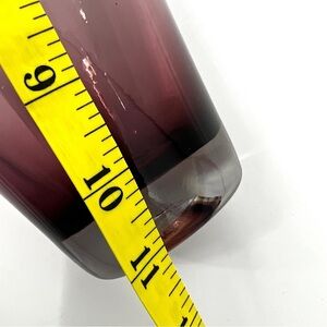 Discover the captivating allure of this 11” Blenko Glass Amethyst Plum Purple Art Vase, a handcrafted masterpiece that elevates any space. Its rich, deep purple hue, reminiscent of twilight skies, showcases Blenko’s signature artistry with subtle variations in color and texture, ensuring each piece is one-of-a-kind.