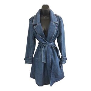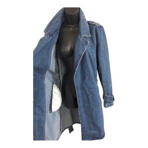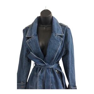 Stunning Blue jeans denim double breasted belted trenchcoat size large new