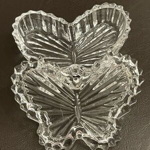 Stunning Butterfly Shaped Cut Crystal Glass Trinket Dish With Lid. EUC
