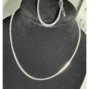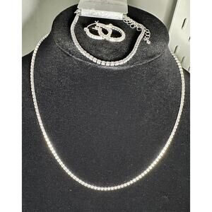 The set includes a necklace, bracelet, and earrings, all featuring sparkling cubic zirconia stones.