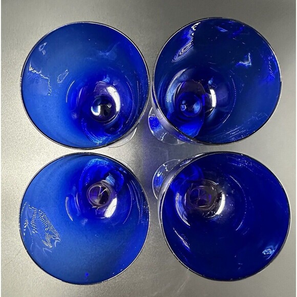 Stunning Cobalt Blue Drinking Glasses with Clear Ball Stems Set of 4 Glasses