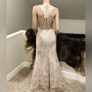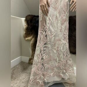 Stunning Custom Embroidered & Sequined Floral Lace Sexy Back Fishtail Gown