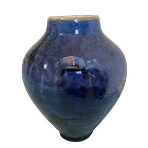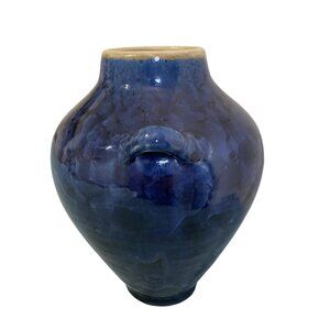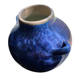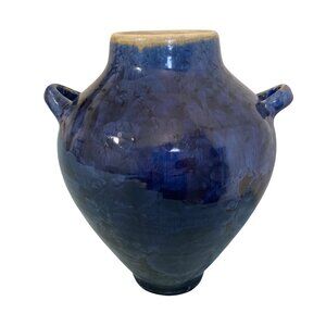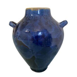 Stunning Dark Cobalt Blue Crystalline Pottery Vase With Handles Signed