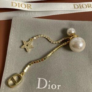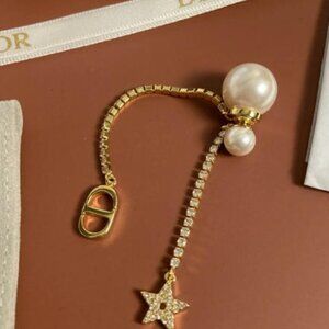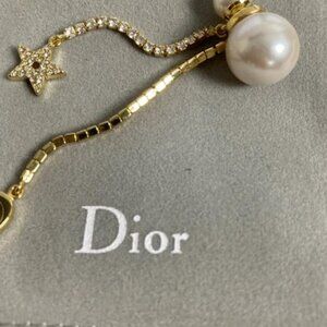 Beautiful Dior Tribales earrings featuring pearls, gold-tone details, subtle rhinestones, and the iconic CD logo. Elegant, timeless, and ultra-feminine!