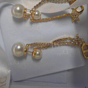 ✨ Stunning Dior Tribales Earrings - Pearls & Gold with Rhinestones ✨