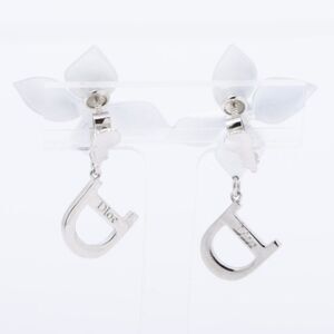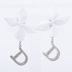 Make a chic statement with these Dior floral drop earrings, featuring glossy white enamel flowers and crystal-studded "D" charms. The silver-tone hardware adds elegance, while the screw-back clip-on style ensures comfortable wear. Perfect for adding that extra sparkle to your outfit! 💎