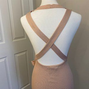 Sexy knit sleevless dress with straps that can be tied in multiple ways.