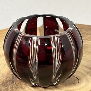 Stunning Faberge Ruby Red Cut To Clear Striped Votive Candle Holder 3”
