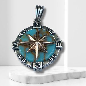 Stunning Gold Northstar Compass Pendant w/ Turquoise Accent - Unisex 925 Sterlin