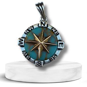 Enhance your style effortlessly with a Silver and Gold Compass Pendant that complements any outfit. The timeless allure of the North Star and Turquoise accent ensures this pendant stands out with grace and sophistication.