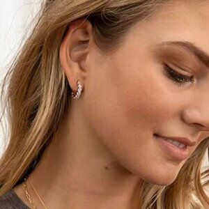 Stunning Gold Rhinestone Small Hoop Earrings (M2)