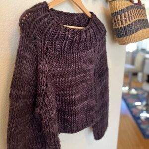 Stunning Hand-knit, Wool and Cashmere, Aubergene Crop Sweater, NWOT