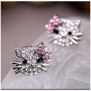 Stunning Hello Kitty CZ Stud Earrings New!