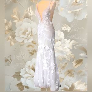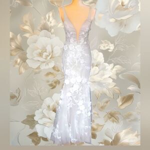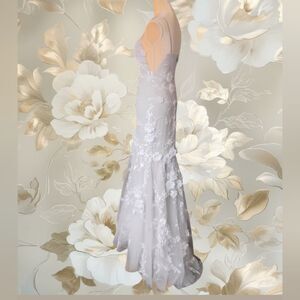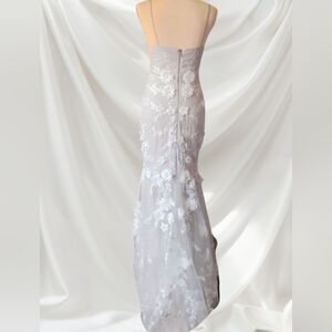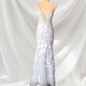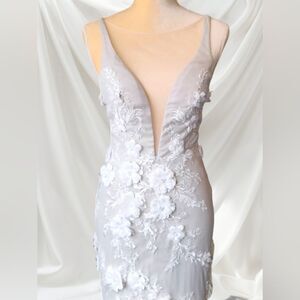 Stunning High Low Tulle With Flower Applique Overlay Gray Mermaid Fit Wedding Dr