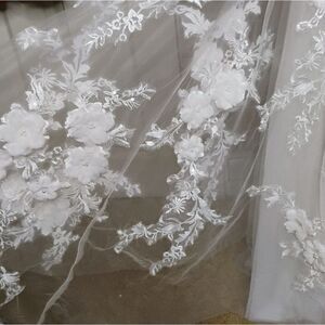 White Tulle and Delicate Flowers Sewn Throughout Tulle