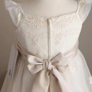 Stunning Ivory Flower Girl Embroidered Lace Tulle Dress Champagne Sash NWT