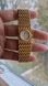 Elegant gold watch with a classic design. Features a woven band and clear dial.