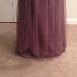 Gorgeous Jenny Yoo Annabelle Dress. Worn only once as a bridesmaid in a wedding. When getting ready I accidentally cut some of the front tulle a little shorter than the dress (This is pictured). The length from top of dress to shortest part of dress is 37 inches . Seen in the photos the longer tulle for the convertible straps could be cut to cover this part if you wear the dress strapless. Waist- 15.5 in Bust is 17 in.