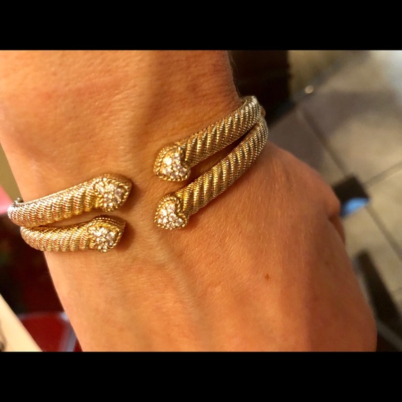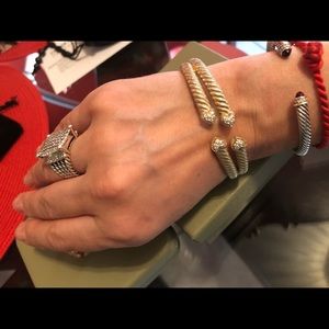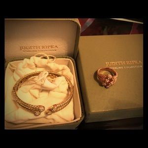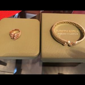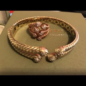 Lovely bracelet and ring. Can be purchased together or separate. Bracelet is SS yellow gold clad small-medium size. Ring is SS pink gold clad size 9. Comes double boxed w pouch.