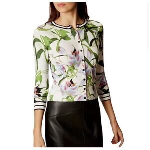 Stunning KAREN MILLEN Floral Lily Sporty Soft Button Front Cardigan US L