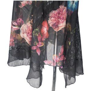 Stunning Komarov Dress Sheer Crinkle Floral Print on Black Hanky Hem L