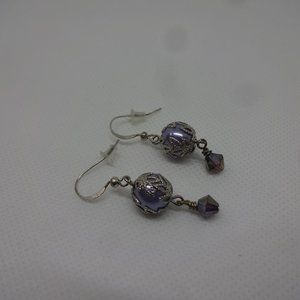 Stunning "LAVENDER PEARL & CRYSTAL" Handmade Silver Dangle Earrings #217