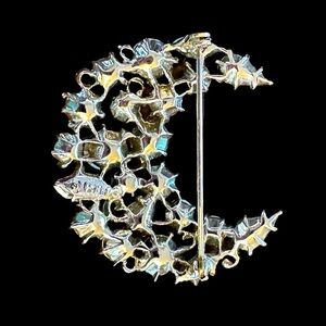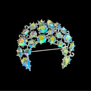 Stunning LISNER Vintage Iridescent Crystal Crescent Brooch - MINT CONDITION