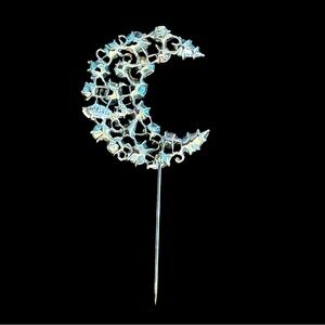 Add a touch of elegance with this stunning iridescent crystal crescent brooch. Perfect for any occasion.