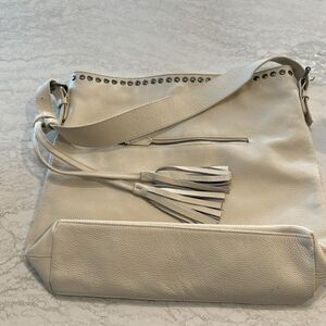 Stunning Laggo “Reed Ivory” Pebbled Leather Studded Hobo Bag