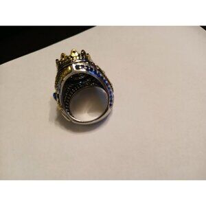 Stunning Large Multi-Colored Silver Ring Women Men Size 8