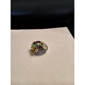 Large stone ring with a stone that changes colors as it moves. Blue stone enhance the ring.