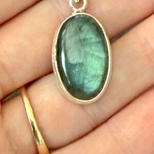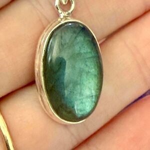 Enhance your jewelry collection with this Stunning Oval Labradorite Necklace Pendant, crafted from 925 sterling silver for a timeless and sophisticated look. The pendant features a captivating oval labradorite stone, renowned for its iridescent play of colors. Its artisan design exudes elegance and uniqueness, making it the perfect accessory for any occasion. This brand-new piece offers both beauty and durability, ensuring it will be a cherished addition to your wardrobe. Treat yourself or gift someone special with this exquisite pendant necklace today!