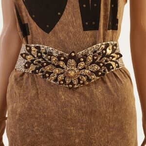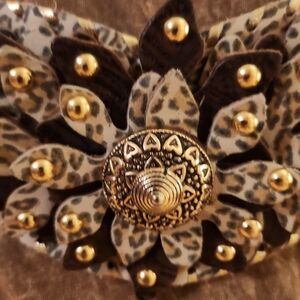 Stunning Leopard Print Leather Belt with Gold Accents, EUC Sz 26" to 31"