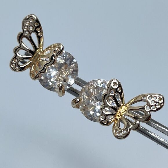 Stunning Light Gold Tone Butterfly Cubic Zirconia Stud Earrings Boho Statement
