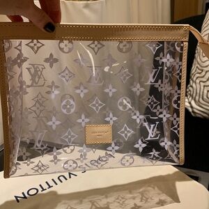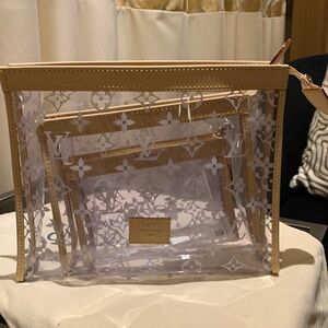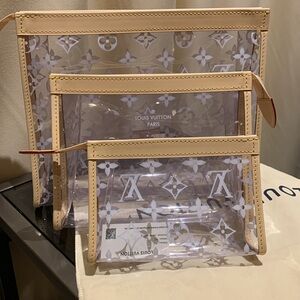 Must have, rare abd unique authentic must have 3 clear with LV logo cosmetic cases. Great for events and concerts.