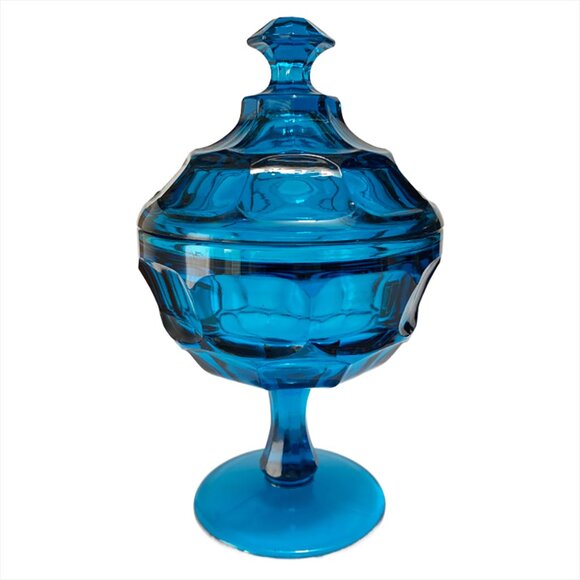 Stunning MCM Westmoreland Blue Glass Dish with Pedistal and Lid - Glass Collecti