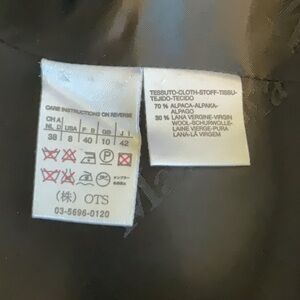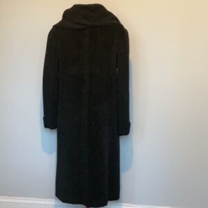 Stunning black MaxMara 3/4 length Alpaca coat. This is where hi-fashion meets function as not only will you look sheik as h$ll but you will be warm. Coat is made of 70% Alpaca (soft and warm) and 30% lana virgine wool. Coat is lined with black logo fabric. Fantastic accentuated collar, cuffed sleeves, side pockets. Coat can be worn for one look buttoned all the way to the top and for another with just buttoning lower buttons (see photo's). Size 8