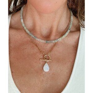 Stunning Moonstone Pendant Necklace 18K WATERPROOF Gold Chain with Toggle clasp