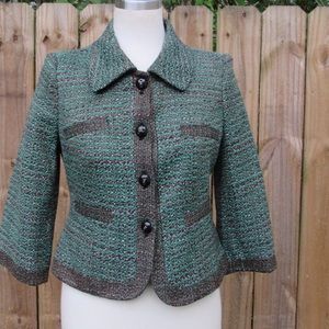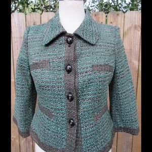 This jacket is gorgeous! NWT! 4 large buttons on front with 2 slit pockets on the front. Stunning green color! Fully lined.