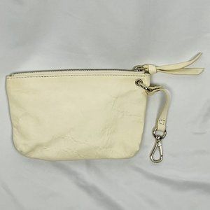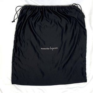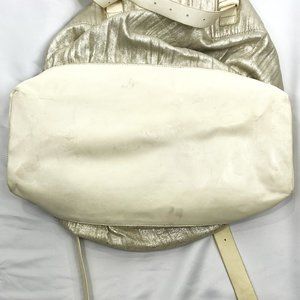 Gorgeous Nanette Lepore handbag with cream leather trim and gold tone buckles.
