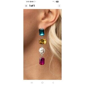These Paparazzi statement dangle earrings are perfect for New Year's Eve or holiday parties. The bright multicolor design and silver plated metal add a touch of glamour to any outfit. The post closure ensures they stay securely in place while dancing the night away. Make a statement with these eye-catching earrings that are sure to make you stand out at any event.
