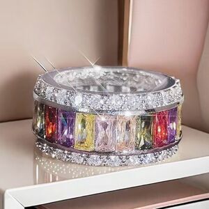 🩷 New sparkling colorful ring with bands of colored gemstones & rhinestones. Beautiful for all occasions with great sparkle & shimmer This ring is stunning It will never lose its luster size 7 & 8 🩷