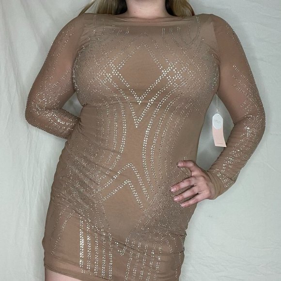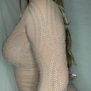 Suuper stunning nude long sleeve dress with gorgeous rhinestone detailing