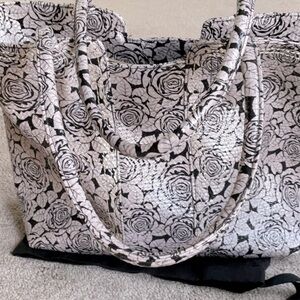 Any one who likes bling this is the purse for you with a mix of black and silver flowers and large crystals all over front. Can also be used as a work bag lots of room.