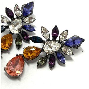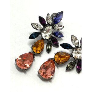 Stunning Oscar de la Renta Dangling Crystal Clip Earrings featuring large pear-shaped pink hanging crystal adding elegance and glamour to any outfit. Each stone is set in dark bezels which brings a beautiful contrast.