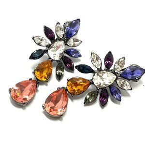 Stunning Oscar de la Renta Dangling Crystal Clip Earrings Large Pear Shaped Pink