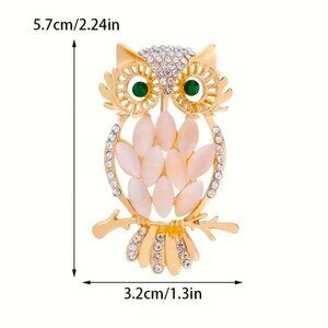 Sparkling Owl Brooch Pin Dark Green Eyes