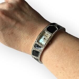 Stunning PERSONA black enamel & rhinestone women's cuff watch