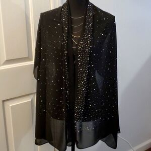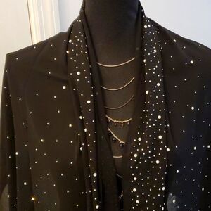 Stunning Pearls and Rhinestones Black Chiffon Scarf
