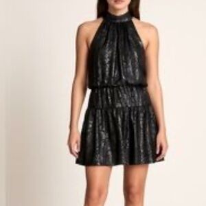 Stunning RAMY BROOK Ellin Shimmer Velvet Halter Party Cocktail Mini Dress